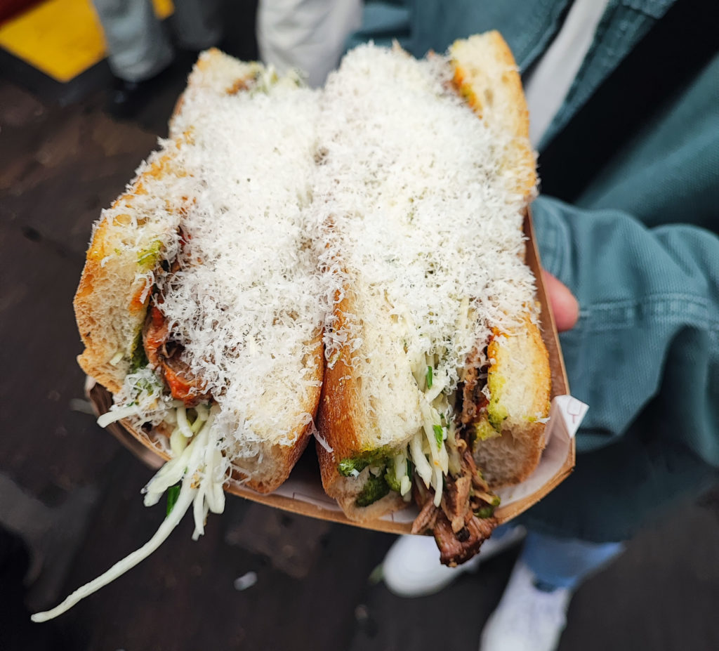 Of course, I had to go for what they call The Best One, consisting of the pork with a honey truffle parmesan mayo, fennel and apple slaw, pepperoncini sott’olio, salsa verde and a generous layer of grated parmesan cheese. You can probably imagine how messy a dining experience this was. But good grief, it was worth it. One of those will set you back £13, but it will keep you full until breakfast the next day.